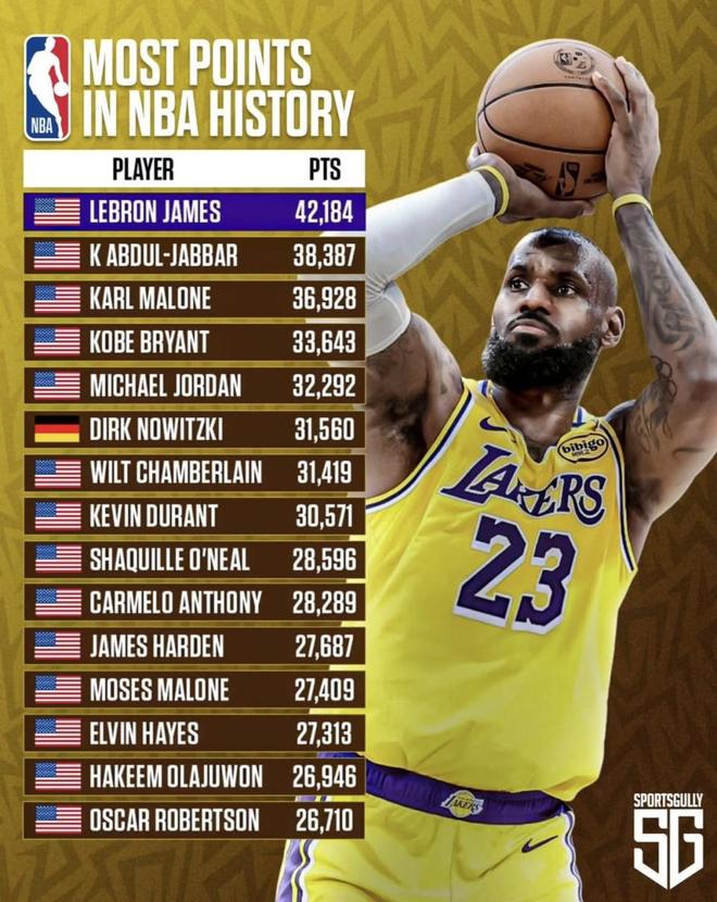 NBA历史得分:杜兰特第八 哈登第十一!未来十年无人能超詹姆斯?