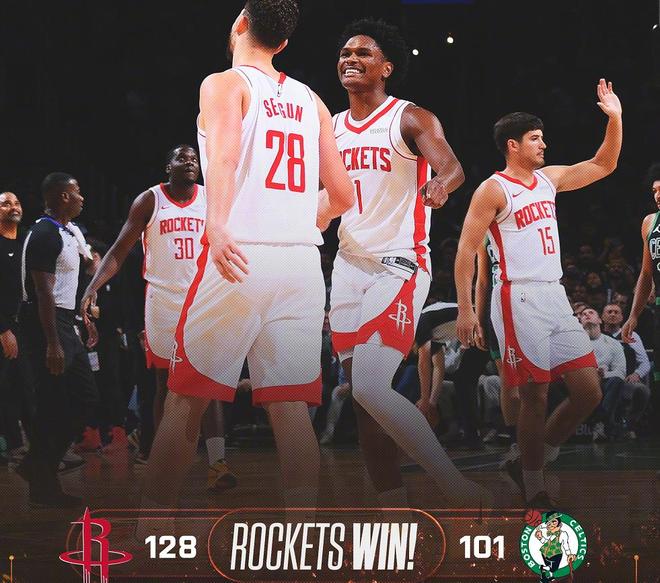 过去两场比赛火箭队将进攻效率提升到了联盟第一,本场比赛一上来火箭延续良好势头,阿门也命中本赛季的首颗三分球,杜兰特单节4投4中无法阻挡的砍下12分,火箭37-24单节建立13分领先,第二节开局双方进攻效率都很低,凯尔特人没有让分差被拉开,但杜兰特又连续进球火箭将分差扩大到20分左右,危险时刻凯尔特人外线突然找回手感3个三分球将分差拉回到12分,乌度卡暂停过后摆出五大阵容,火箭开始全面统治攻防,最终火箭单节再赢5分带着18分领先进入下半场,休息归来火箭攻势如潮首发五人得分全部都来到10+,绿军这边怀特、普理查德和布朗三位核心三节打完合计35中13,低迷状态也直接导致第三节分差直接拉开25分;末节双方早早撤下首发宣告比赛提前进入练兵时间。最终,火箭客场128-101大胜凯尔特人迎来3连胜。