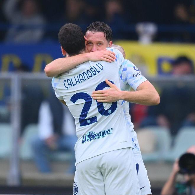 第16分钟,国米终于打破僵局。恰尔汗奥卢开出战术角球,维罗纳禁区内出现混乱,皮球落到弧顶位置,泽林斯基不停球直接迎球怒射破门,国际米兰1-0领先;随后也不知国米是怎么了,开始放缓节奏,压迫力下降,给了维罗纳喘息机会。